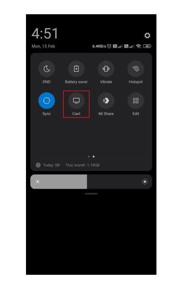 3. Next, pull down the Notification Panel and hit the Cast icon.