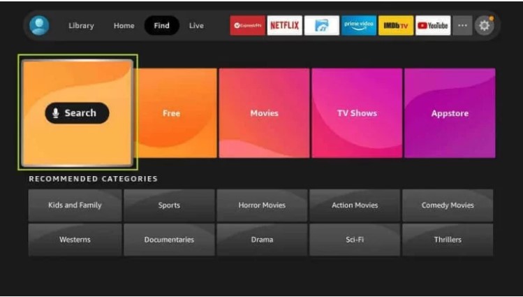 3. Hit the Search tile below the Find tab.