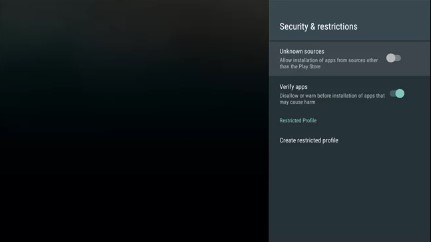 6. Tap Security and Restrictions and enable the option Unknown Sources.