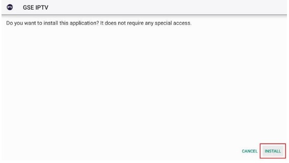 9. On the pop-up menu, hit the Install button to download the GSE Smart IPTV app.